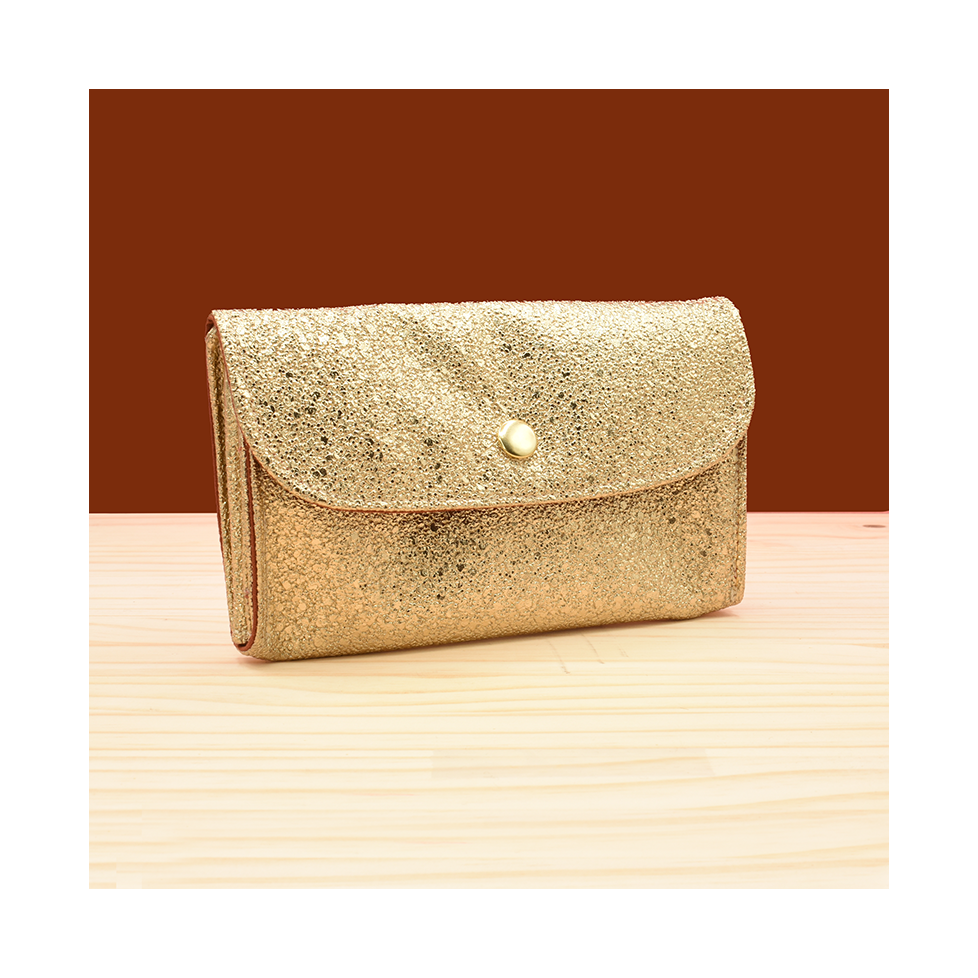 Brillez au quotidien avec notre portefeuille en simili cuir doré.